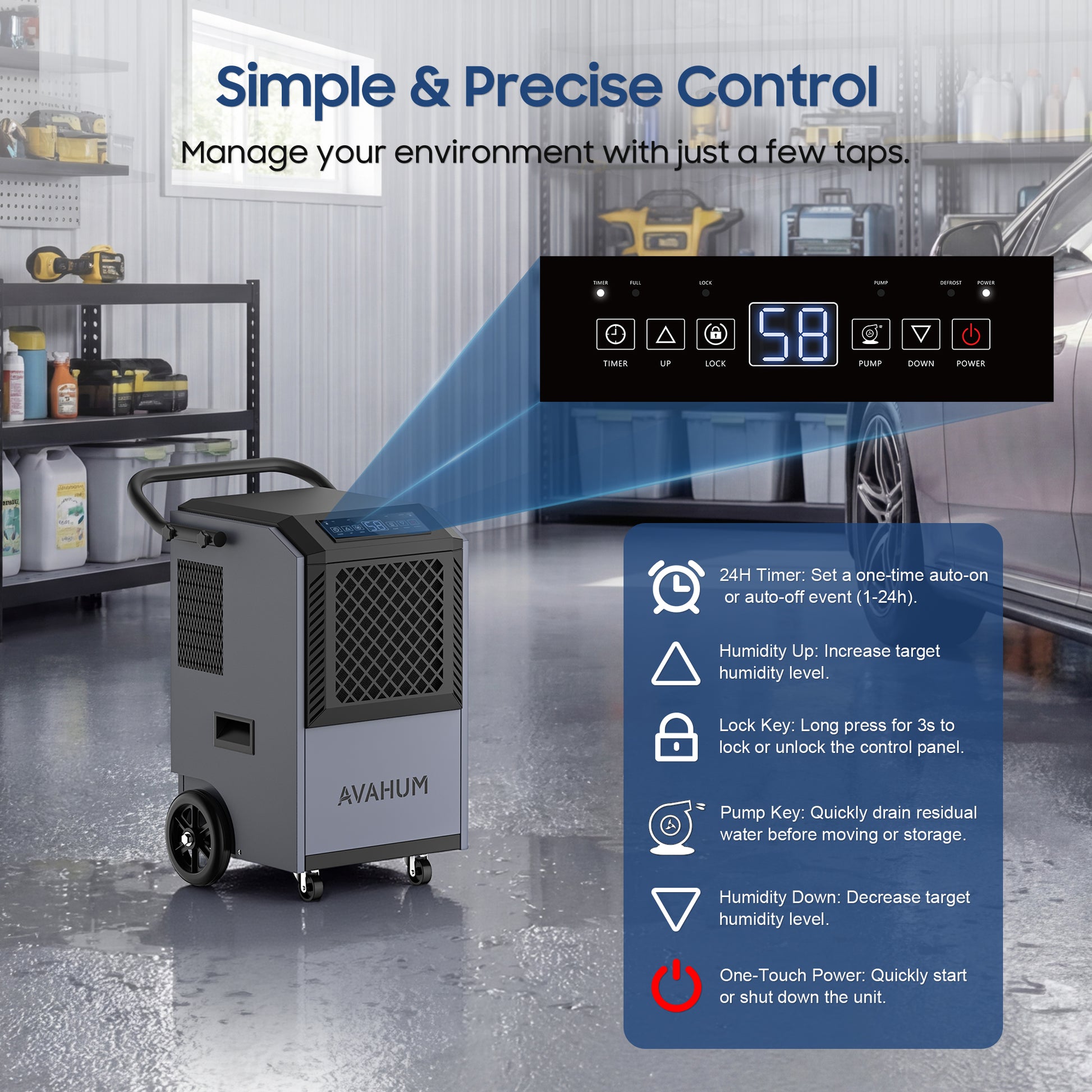 AVAHUM 160 Pints Commercial Dehumidifier With Pump for Basement,Large Dehumidifier for Basement With Drain Hose,Timer and 4 Wheels,Industrial Dehumidifiers for Flood Repair,Drying Basement,Warehouse and Factory