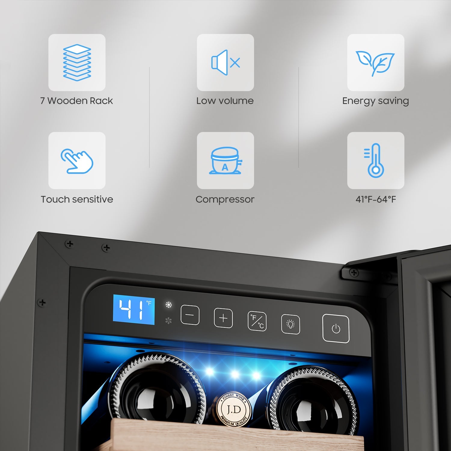 - One-Touch Control:This wine cooler refrigerator could hold 21 bottles of your favorite wine in different sizes, LED control display makes it easy to set temperature from 40-66°F, providing perfect chilling temperature,Could be installed as a built-in wine cooler or freestanding wine fridges.