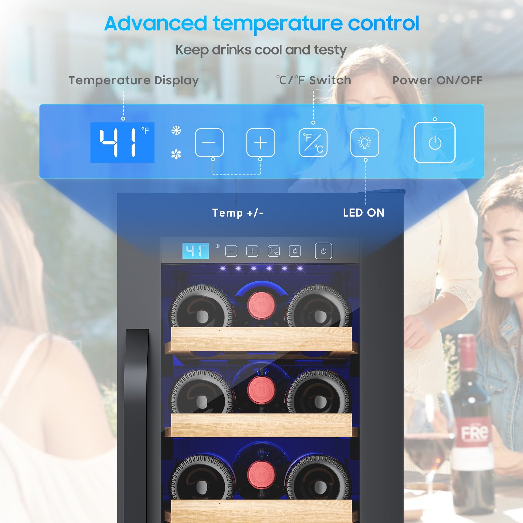 - One-Touch Control:This wine cooler refrigerator could hold 21 bottles of your favorite wine in different sizes, LED control display makes it easy to set temperature from 40-66°F, providing perfect chilling temperature,Could be installed as a built-in wine cooler or freestanding wine fridges.