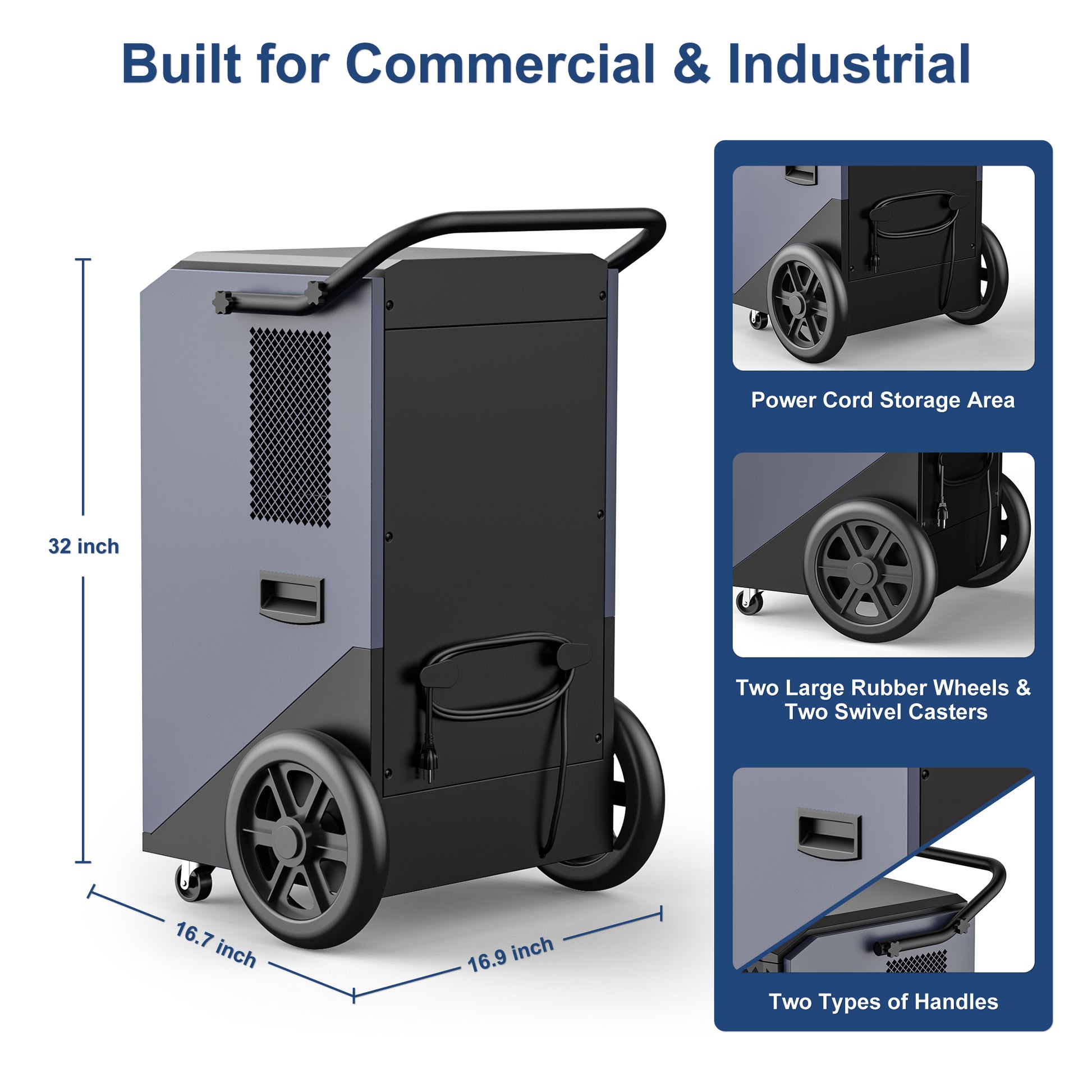 - 320 Pint Dehumidifier: AVAHUM AM305 commercial dehumidifier can extract 320 pints per day at saturation and 130 pints per day at AHAM conditions, covering areas up to 9,000 sq. ft and rapidly reducing humidity to comfortable levels. This cETL-listed dehumidifier features a durable metal outer casing designed to withstand rugged conditions, ensuring long-term use and easy maintenance. It's suitable for basements, warehouses, offices, factories, shops, and storage areas.