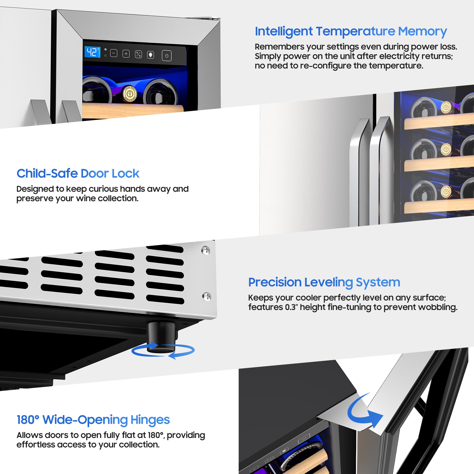 - Quiet, Stable & Energy-Efficient Operation: Powered by a high-performance compressor and advanced air circulation, this wine cooler maintains consistent temperatures while minimizing vibration and noise—ideal for peaceful use in kitchens, apartments, or home bars